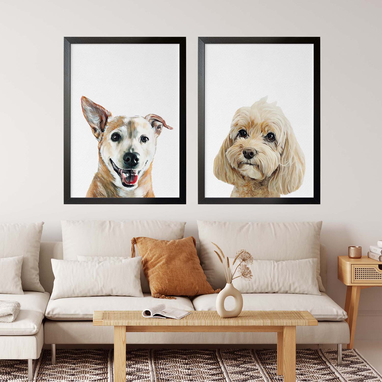 După ce am cumpărat prima mea pictură cu micile fundulețe drăgălașe ale cățeilor mei, am avut-o pe Atina să le picteze și fețele lor frumoase. Sunt extrem de mulțumită de fiecare detaliu pe care l-a surprins. Toate cele trei picturi atârnă acum mândru în camera de zi pentru ca toți să le vadă. Mulțumesc încă o dată, le iubesc pe toate.